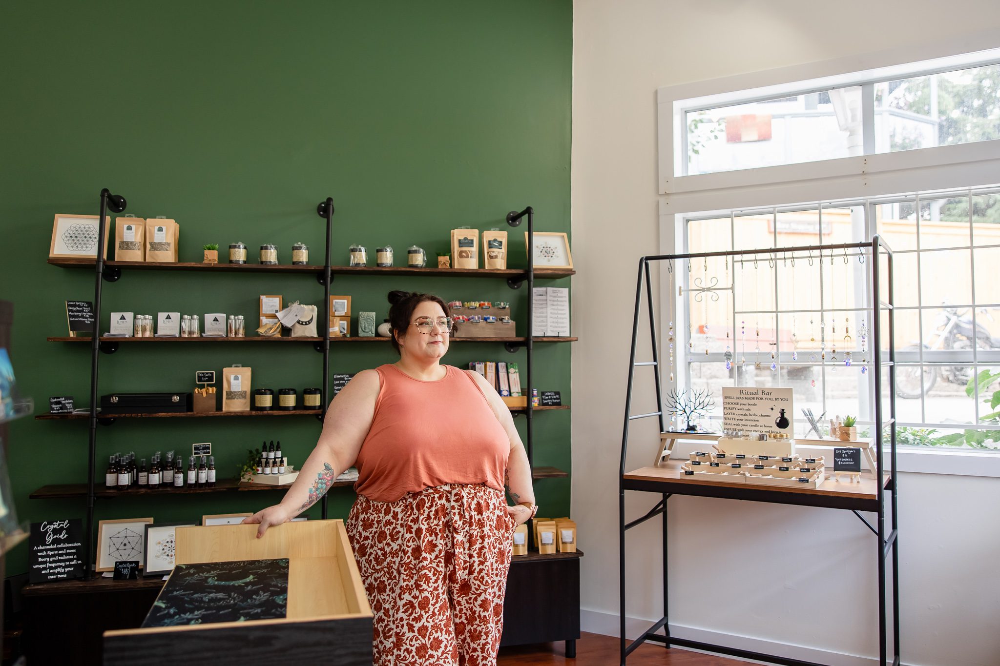 This session was a bigger one with lots to cover! We took some images of her space as well as showcasing her and her customers in it. Plus some images for Seryna’s coaching and offerings. We aimed to use the space around her shop to create connection to the cute little Nanaimo spot. It really is a one-two punch to do your branding images in space that make sense to your audience. Whether it be in connecting where you are providing your offerings or a certain vibe you want them to experience. In this case it was both.